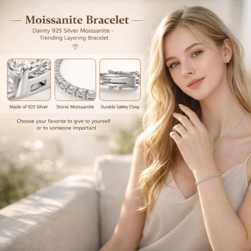 925 sterling silver four-leaf clover bracelet | silver moissanite |