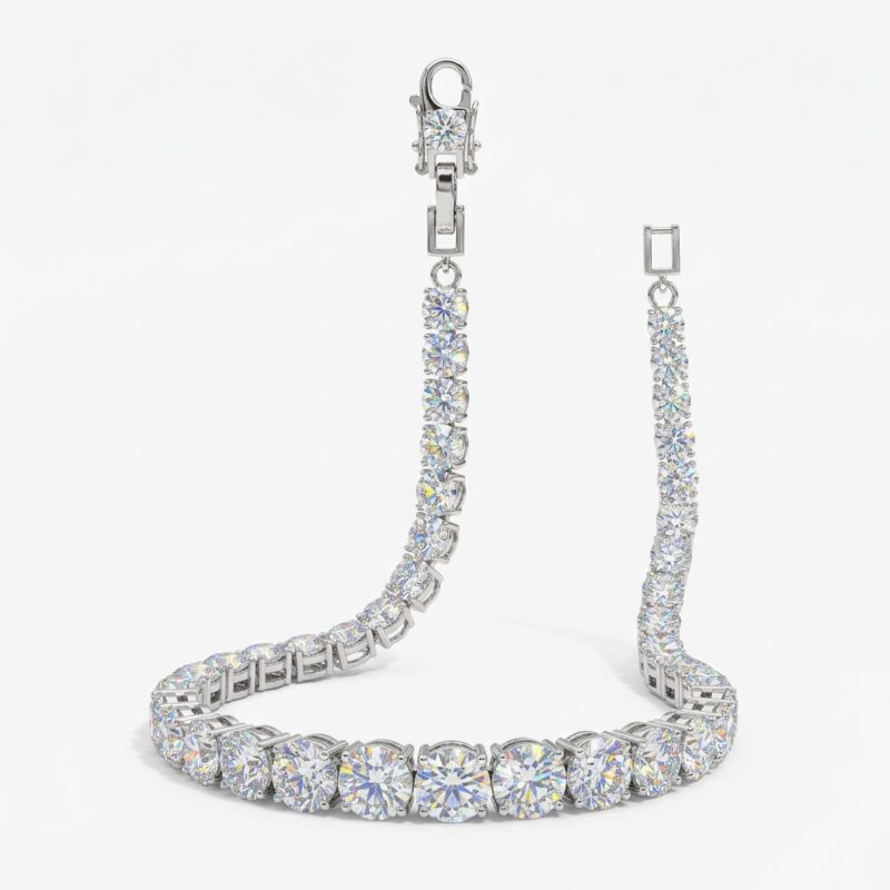 925 Sterling Silver Alternating Round & Baguette Moissanite Tennis Necklace | Timeless Luxury Jewelry