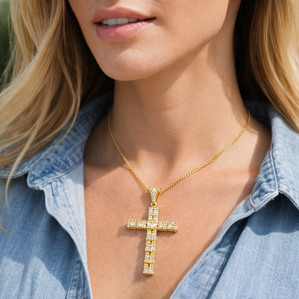 925 silver moissanite cross necklace, faith jewelry, ice crystal sparkling pendant, a gift suitable for both men and women