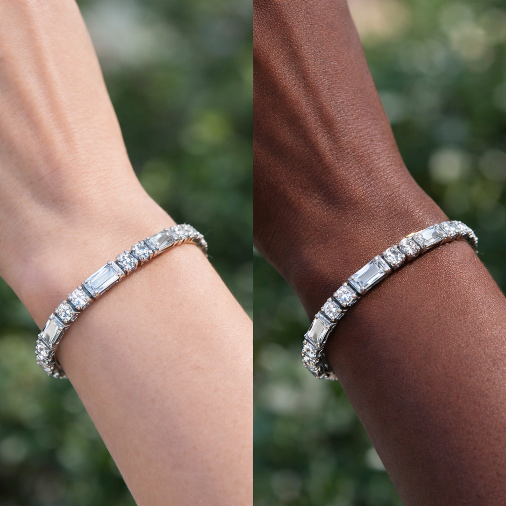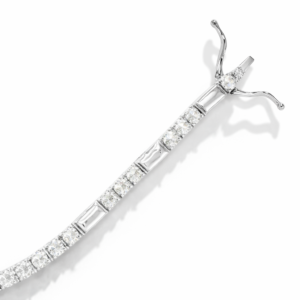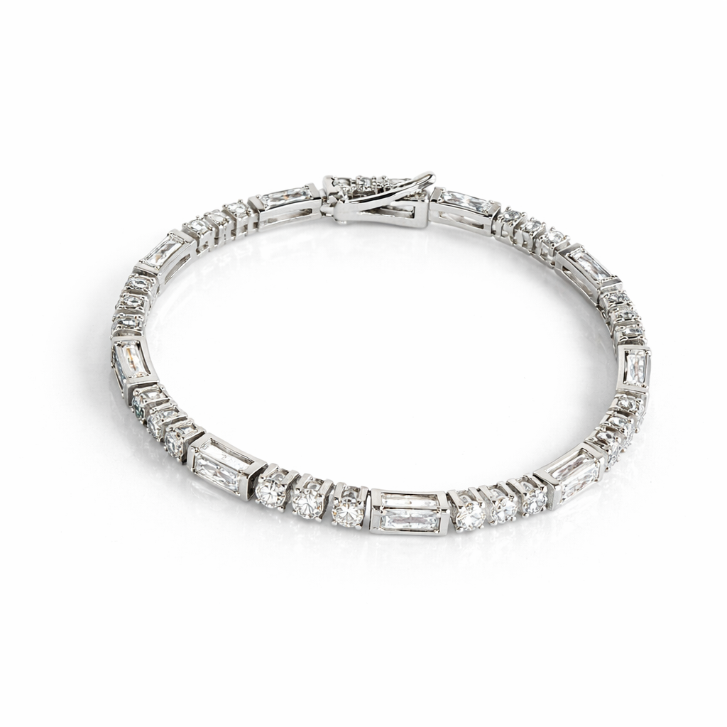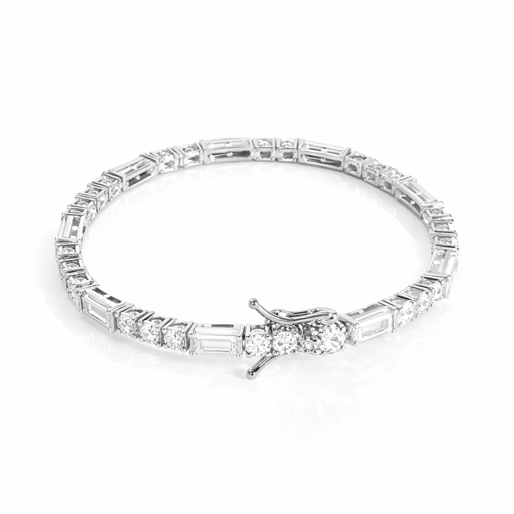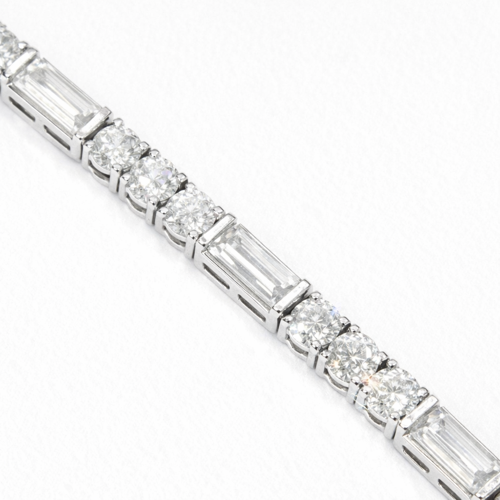 925 Sterling Silver Alternating Round & Baguette Moissanite Tennis Necklace | Timeless Luxury Jewelry